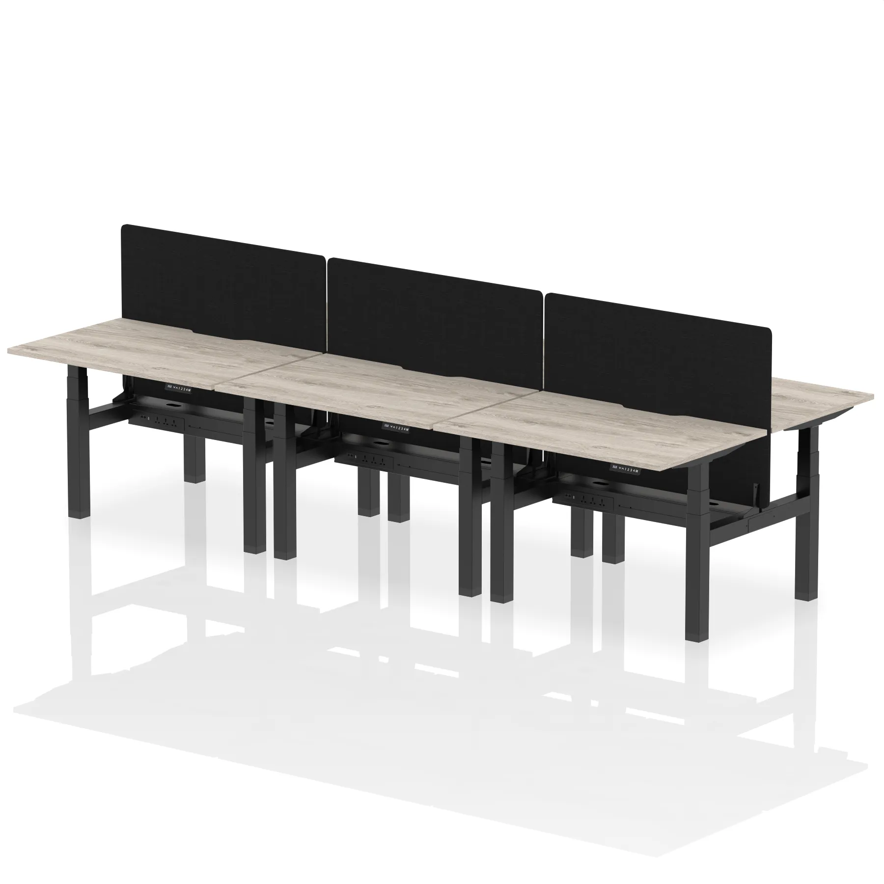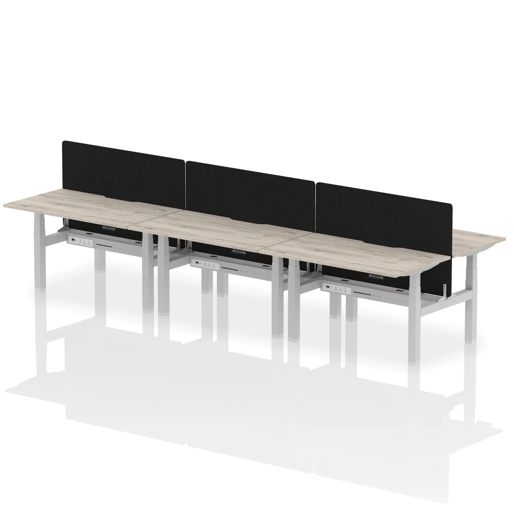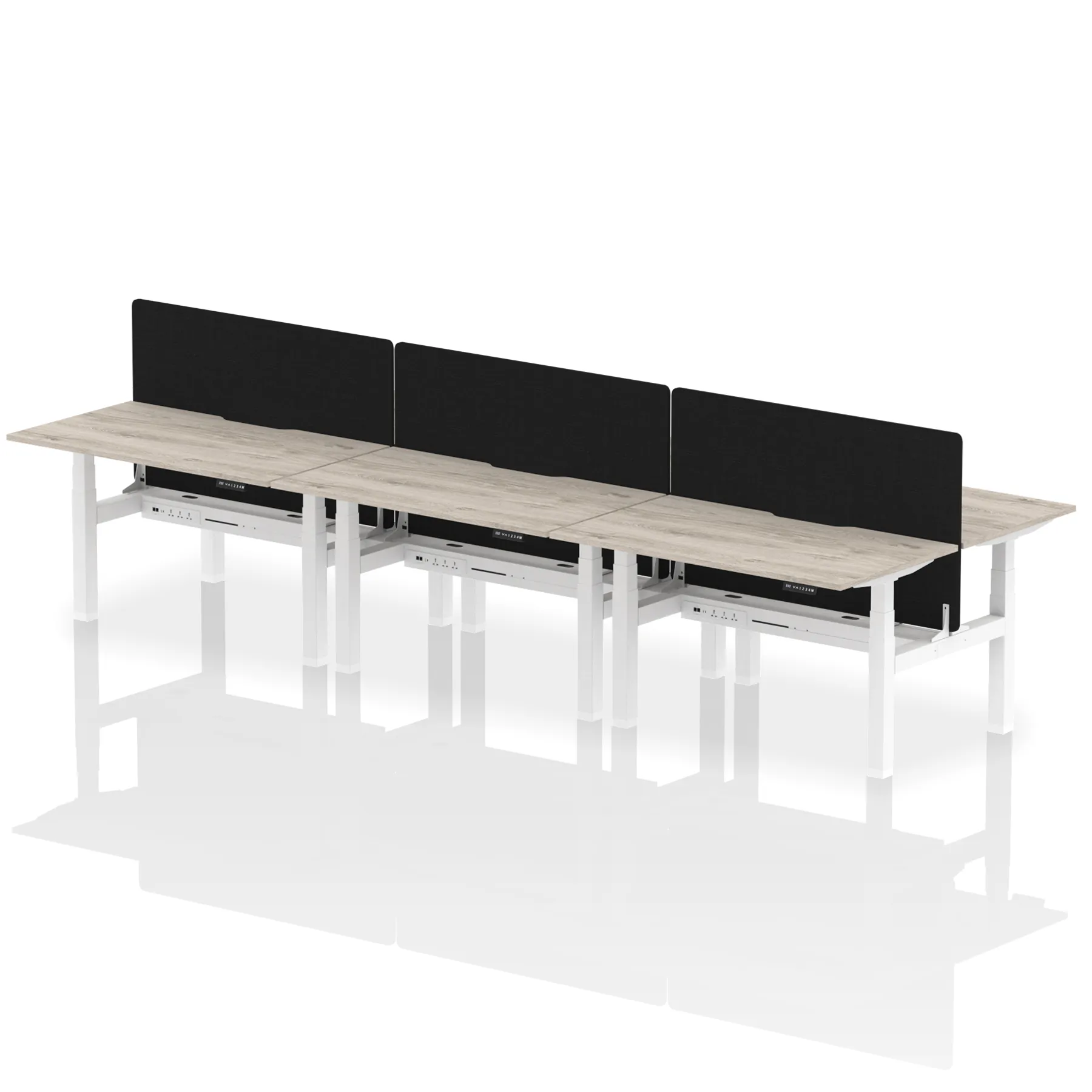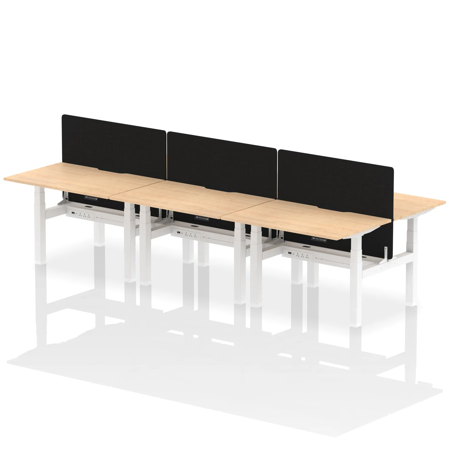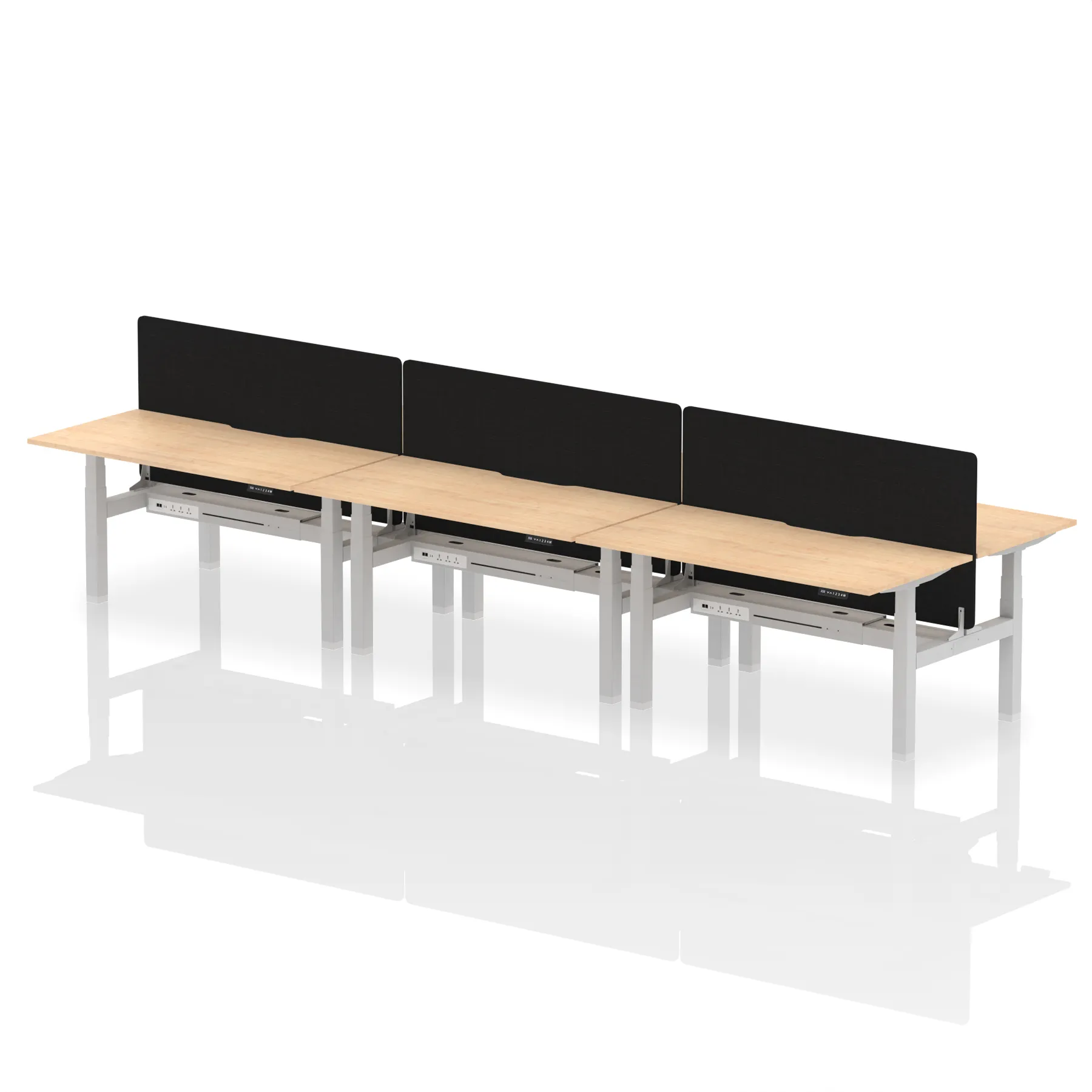 Air Back-to-Back Scalloped Edge Height Adjustable Bench Desk – 6 Person with Black Straight Screen