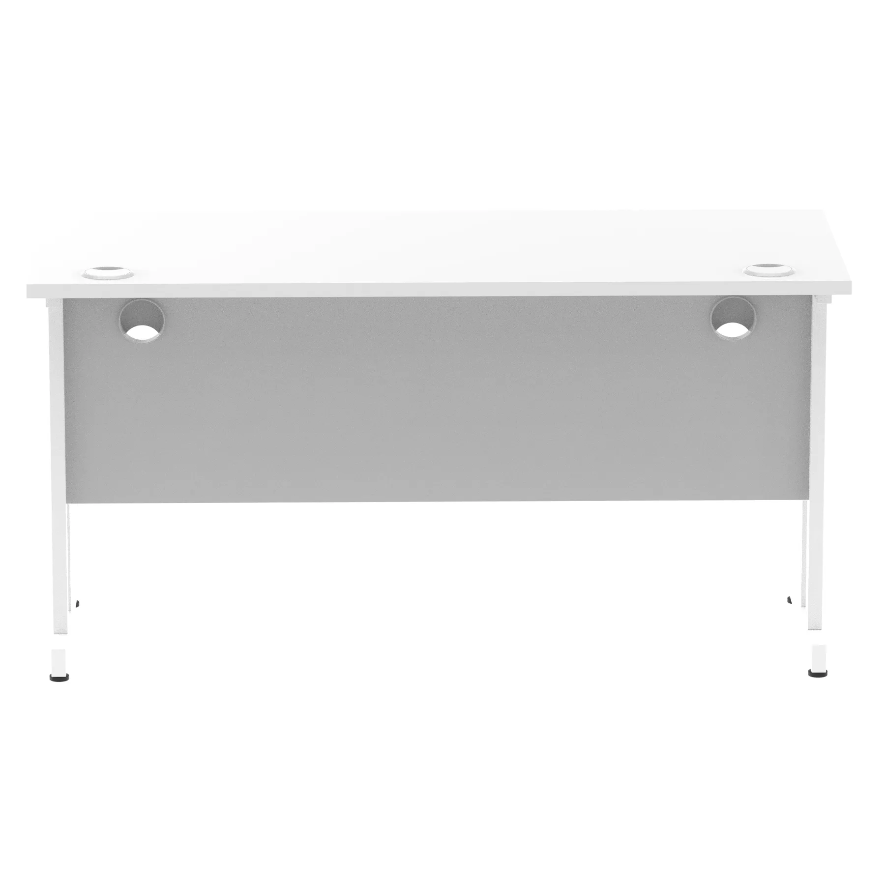 Impulse contract desk | 25mm tops | Heat resistant melamine finish | 18mm modesty panels | 2mm protective abs edging | Silver coated double strut legs | 2 cable ports | Height adjustable feet | Steel to steel fixings | 2 modesty panels slots |Deep set modesty panel (5″) allows for compatibility of most screen clamp fittings | Weight Capacity 135Kg