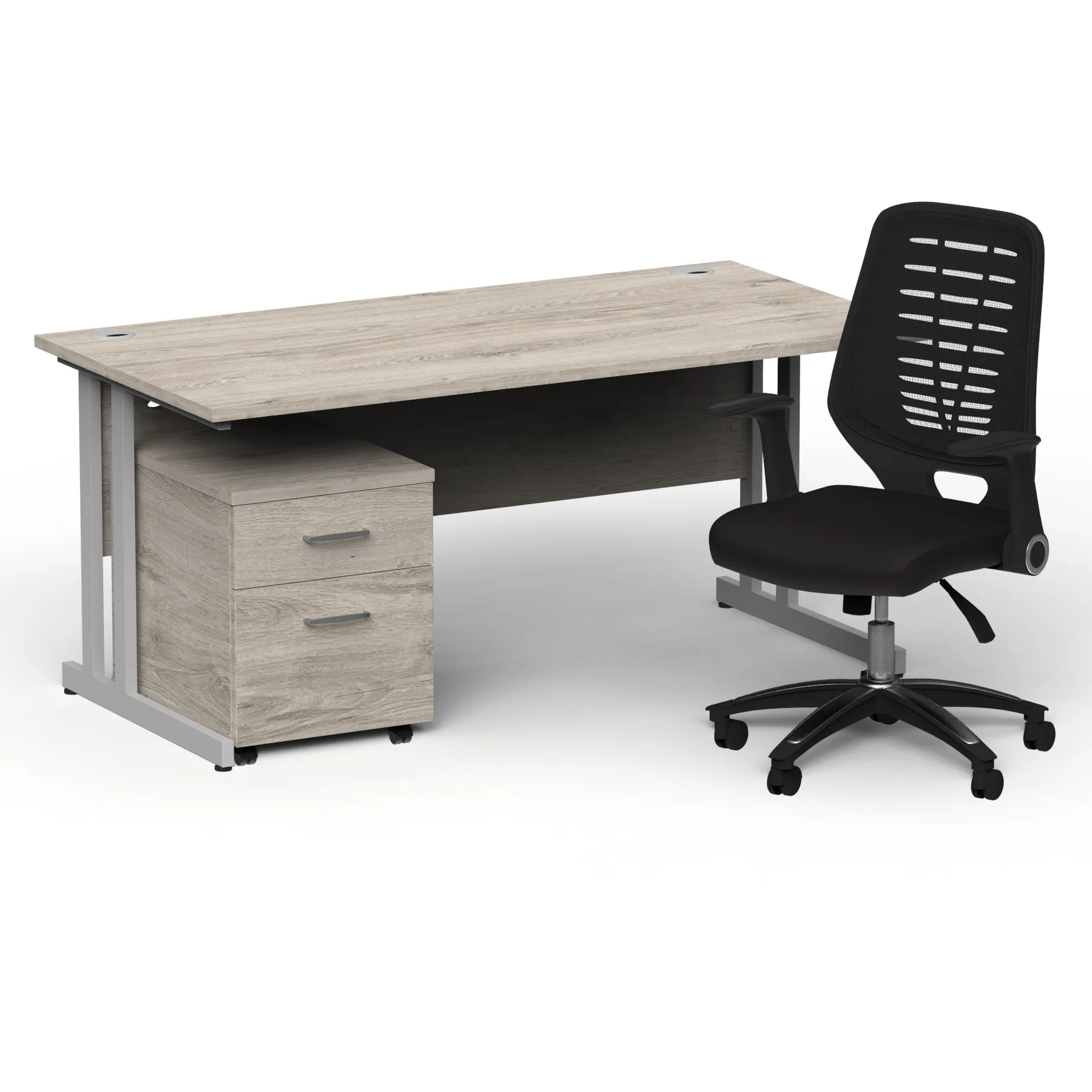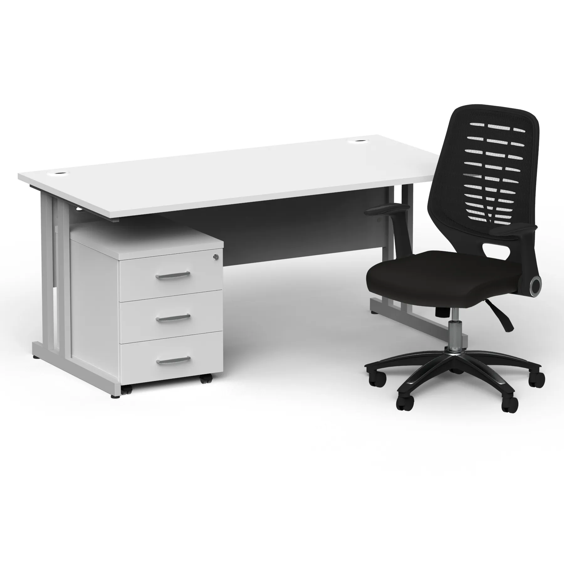 Impulse 1600mm Cantilever Straight Desk With Mobile Pedestal and Relay Black Back Operator Chair