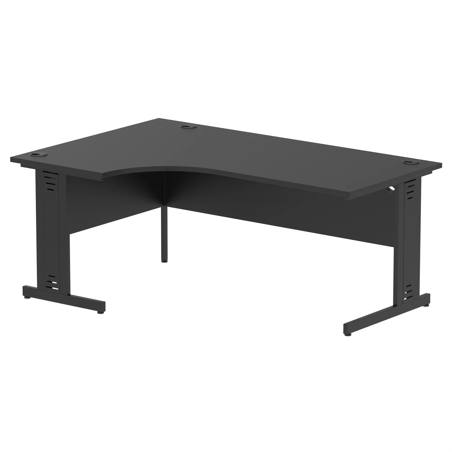 • Impulse contract 1800 wide crescent desk • 25mm tops • Heat resistant melamine finish • 18mm modesty panels • 2mm protective abs edging • Double strut legs • 3 cable ports • Height adjustable feet • Steel to steel fixings • 3 modesty panels slots • 600 deep • Deep set modesty panel (5″) allows for compatibility of most screen clamp fittings • Weight Capacity: 135Kg