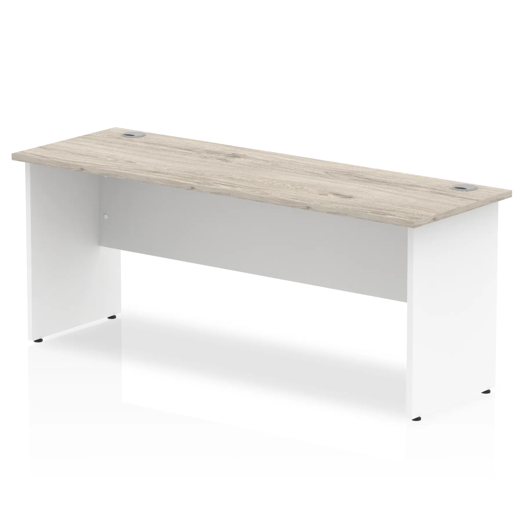 Impulse contract desk | 25mm tops | Heat resistant melamine finish | 18mm modesty panels | 2mm protective abs edging | Panel end legs | 2 cable ports | Height adjustable feet | Steel to steel fixings | 2 modesty panels slots Deep set modesty panel (5″) allows for compatibility of most screen clamp fittings | Weight Capacity 135Kg