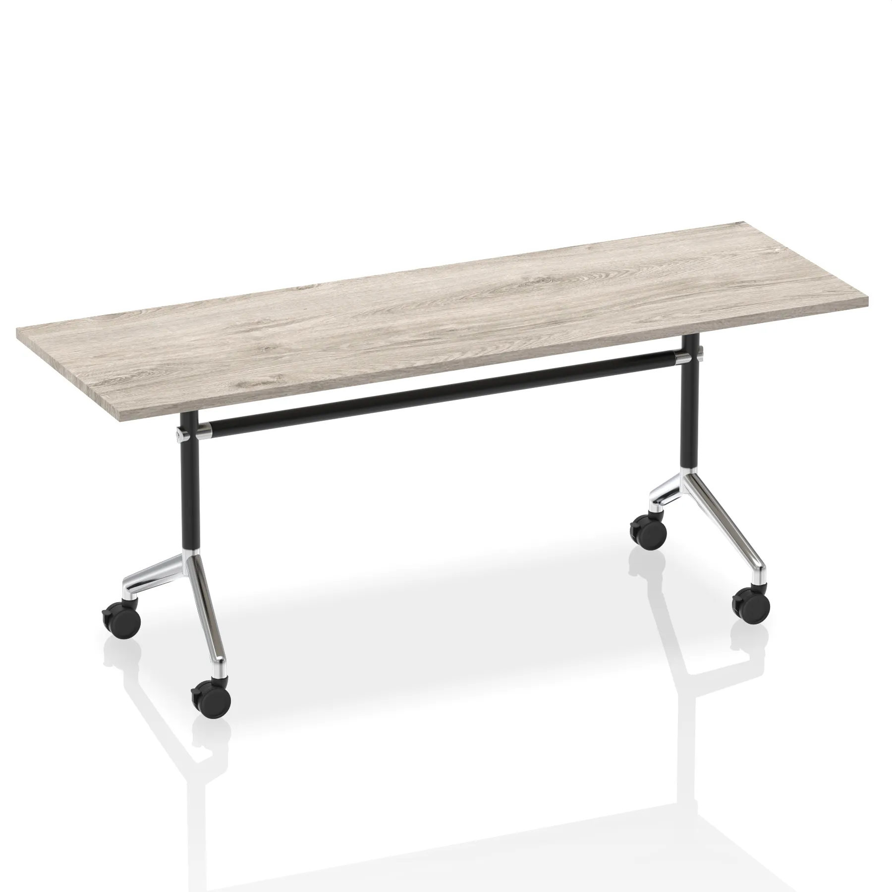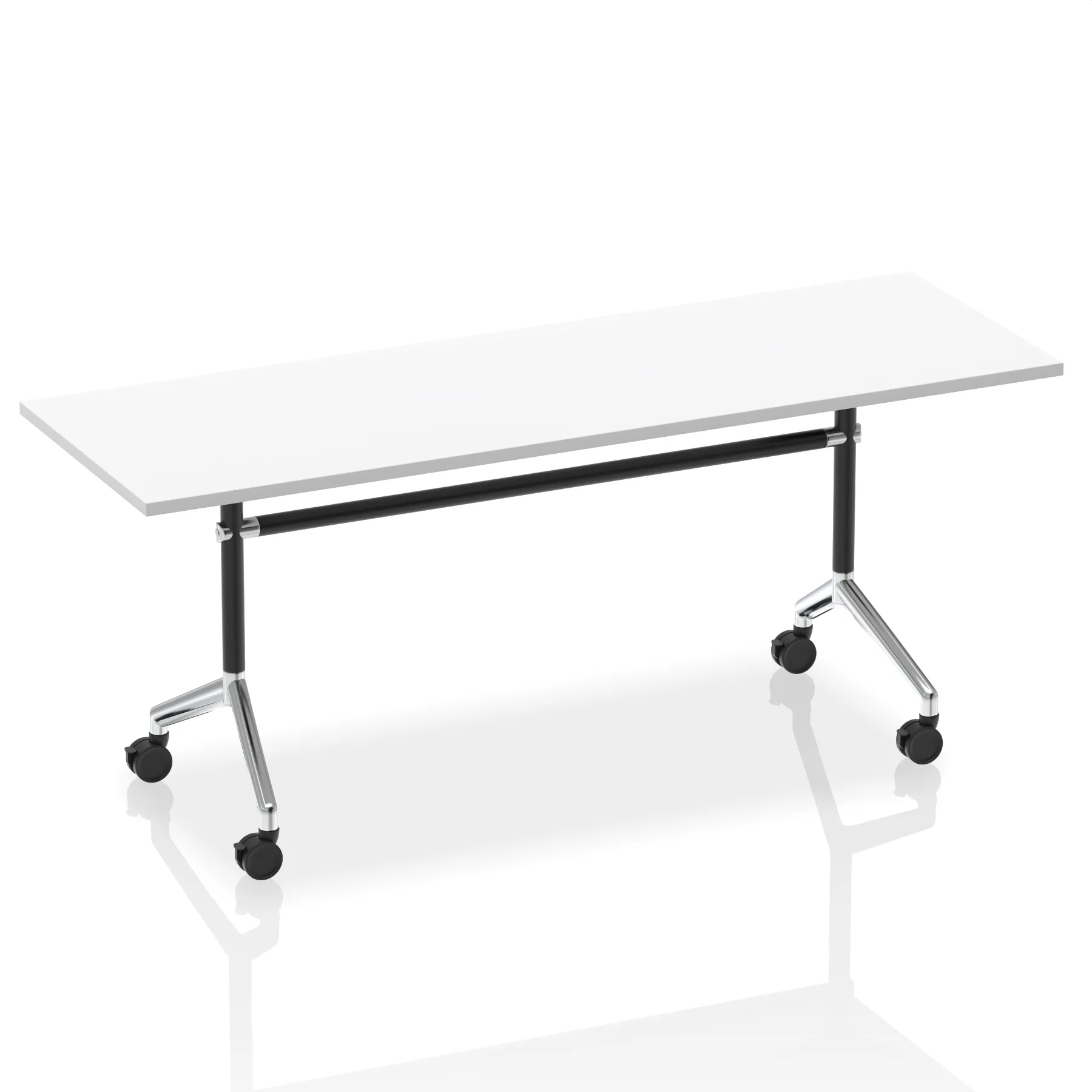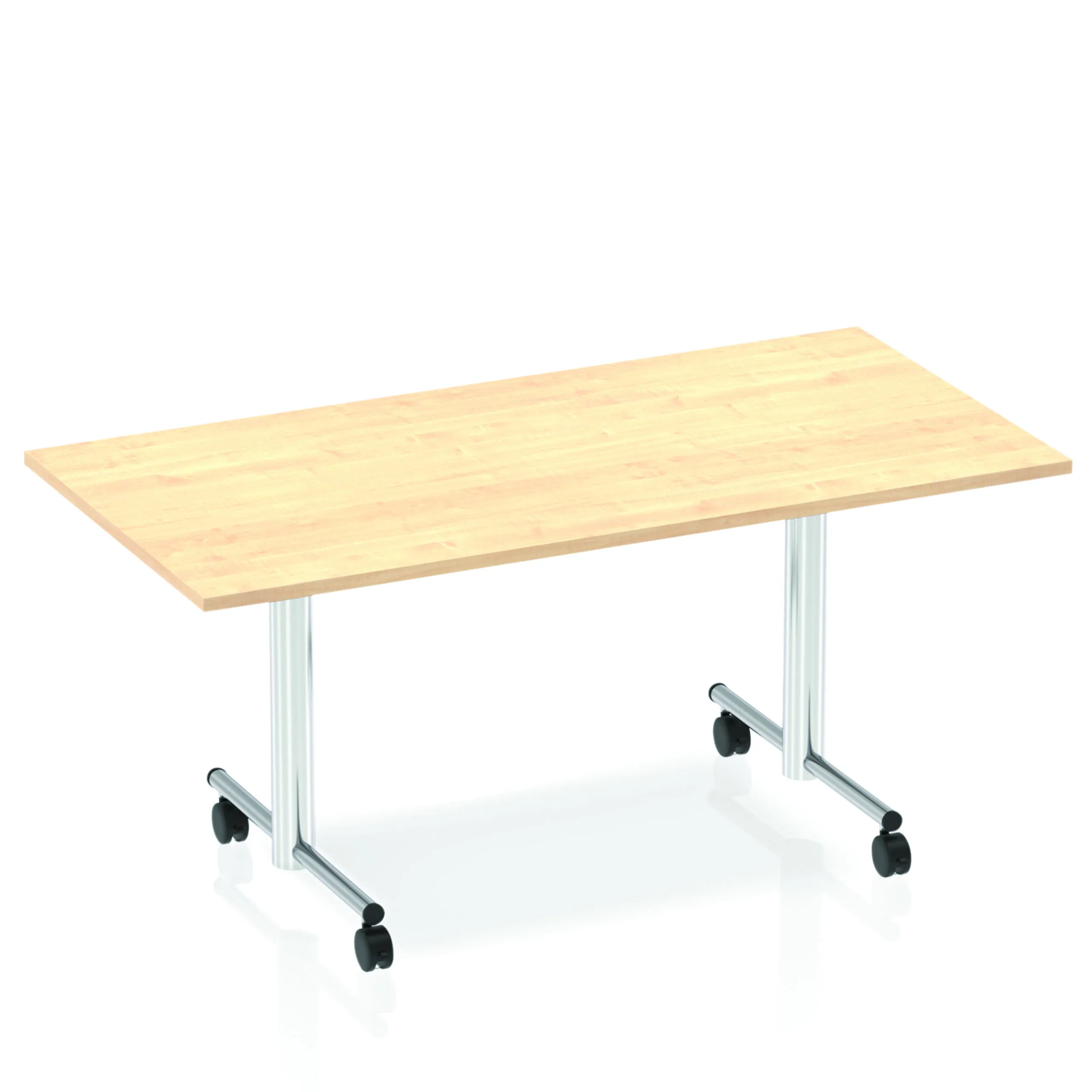 Impulse freestanding meeting table | Classic rectangular shape |Table folds easily for space efficient storage | Provides excellent team working environment | 25mm thick top | Attractive silver coated leg | 2mm abs protective edging | Heat resistant beech melamine finish | Steel to steel fittings | Weight Capacity 100Kg