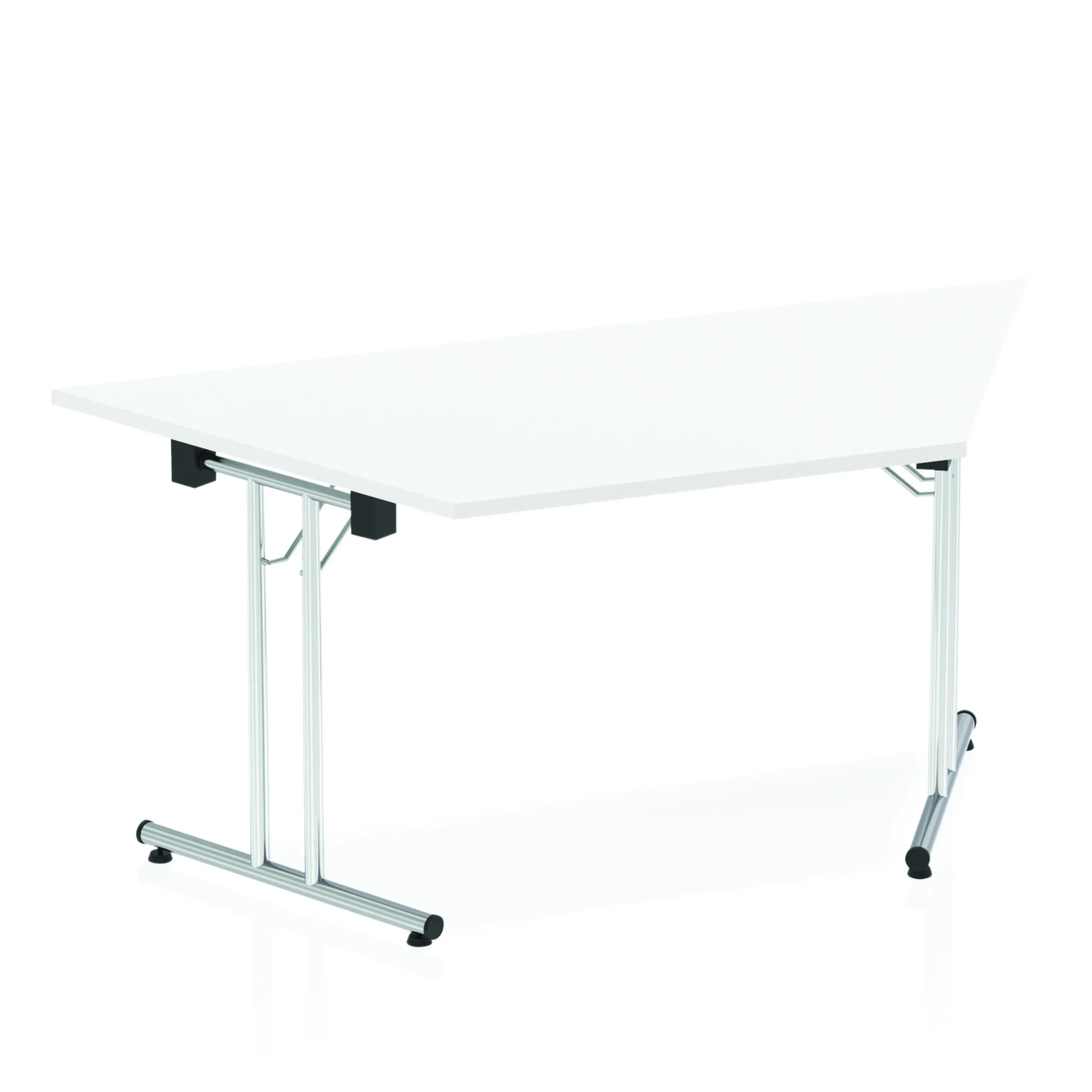 Impulse freestanding meeting table | Trapezoidal shape for groups of tables | Table folds easily for space efficient storage | Provides excellent team working environment | Slanted sides measure 800mm from corner to corner | 25mm thick top | Attractive silver coated leg | 2mm abs protective edging | Heat resistant beech melamine finish | Steel to steel fittings | Weight Capacity 100Kg