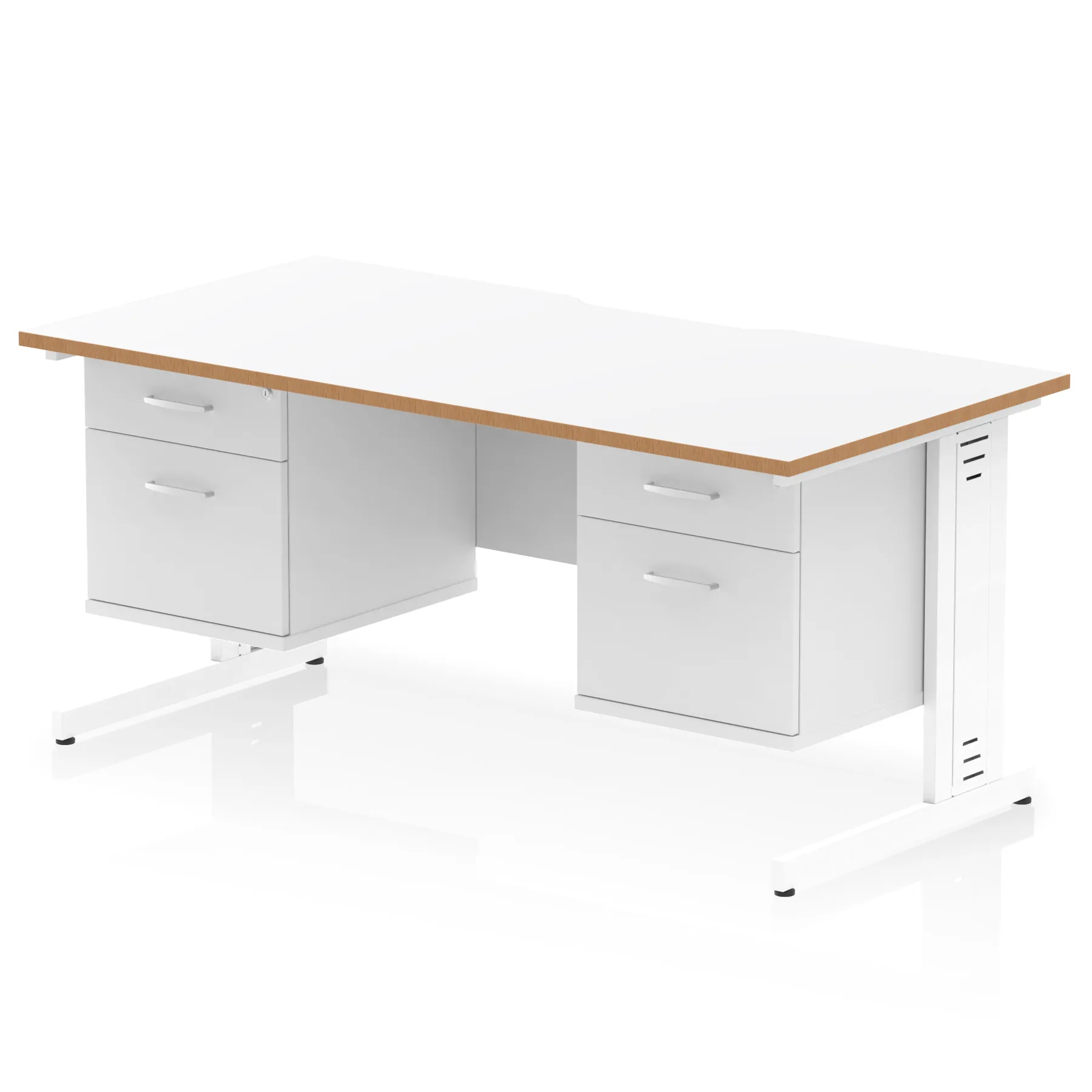 Impulse Scalloped Edge 1600mm Cable Managed Straight Desk With Two Fixed Pedestal