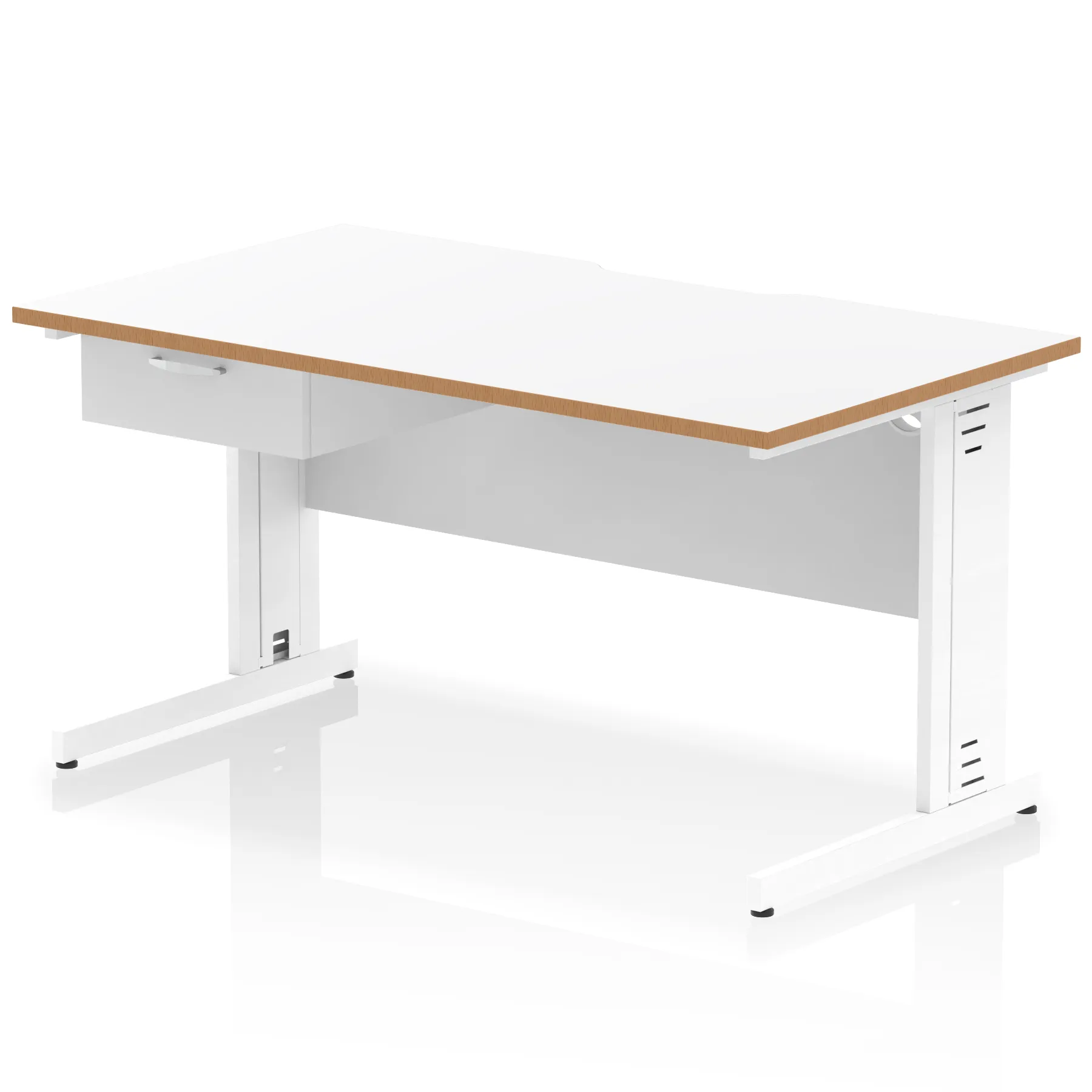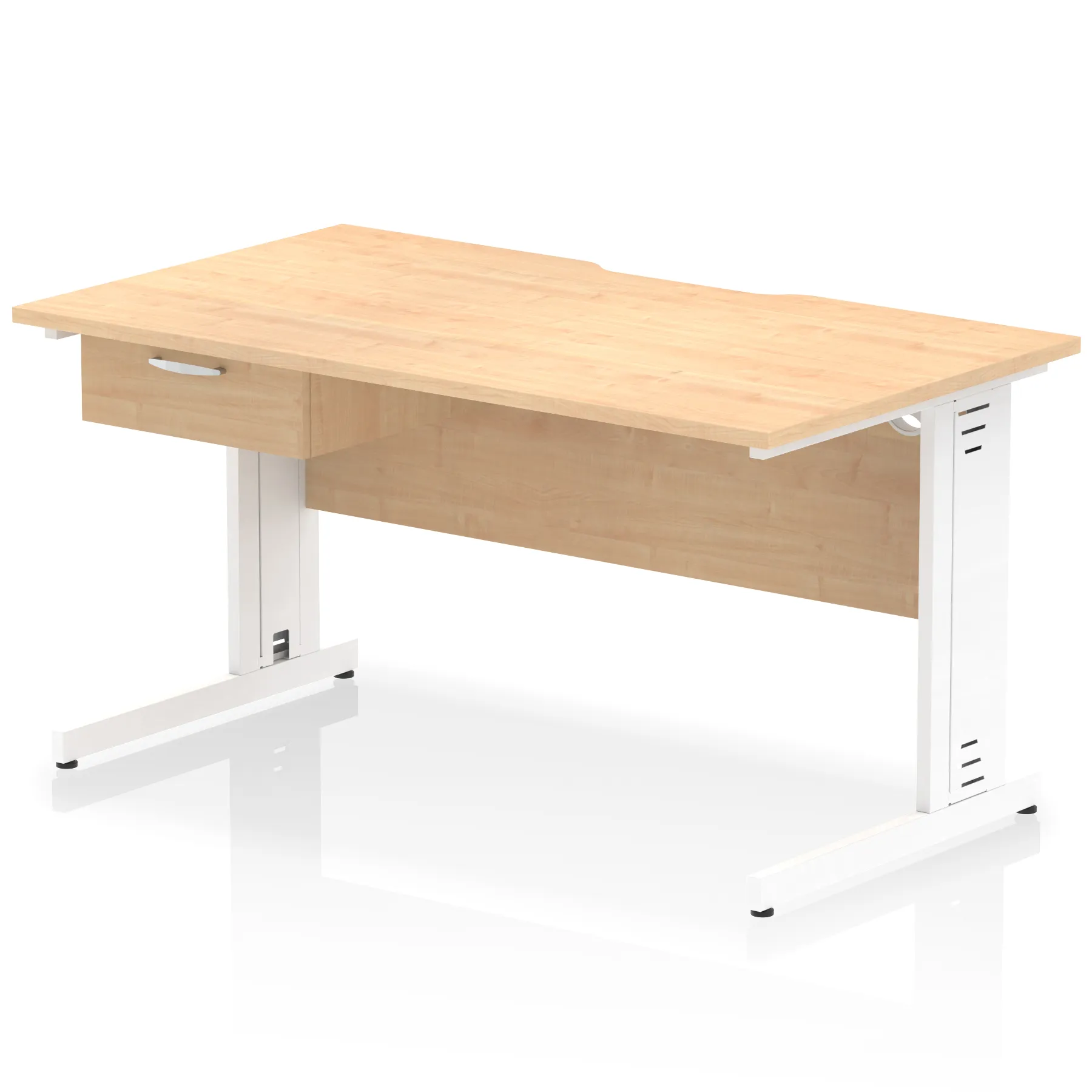 Impulse Scalloped Edge Cable Managed Straight Desk With Single One Drawer Fixed Pedestal