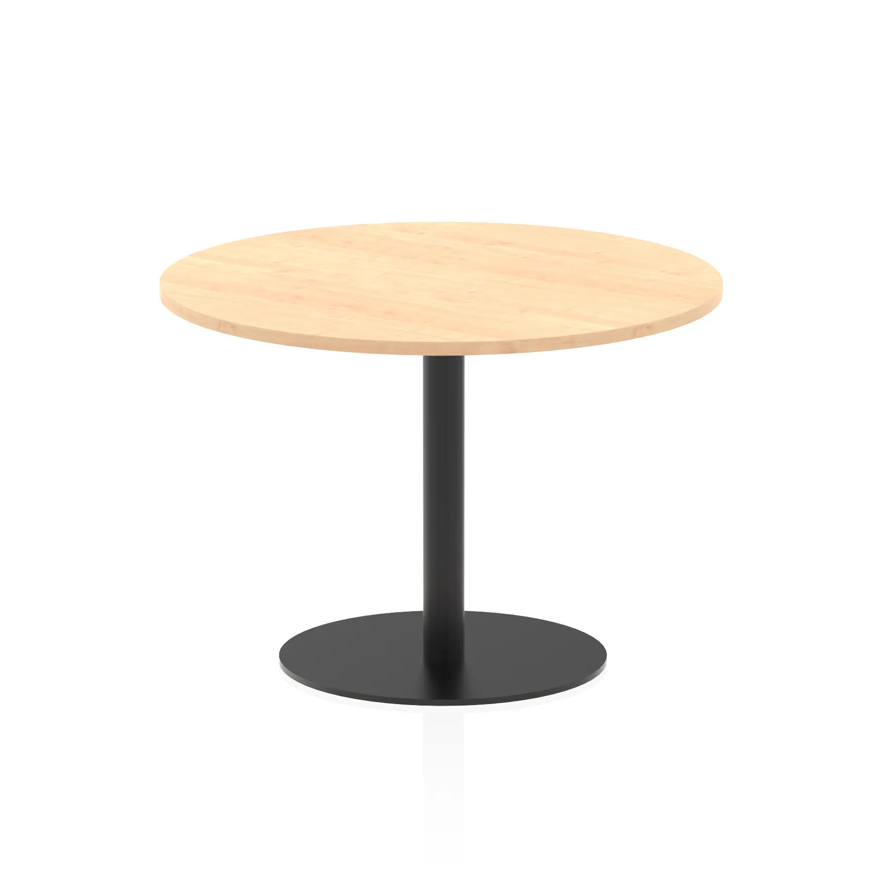 25mm thick desk top profile | Brushed stainless steel effect circular base (580mm diameter) | Brushed stainless steel pillars (76mm diameter) | Weighted base provides stability | Two part bolted frame system
